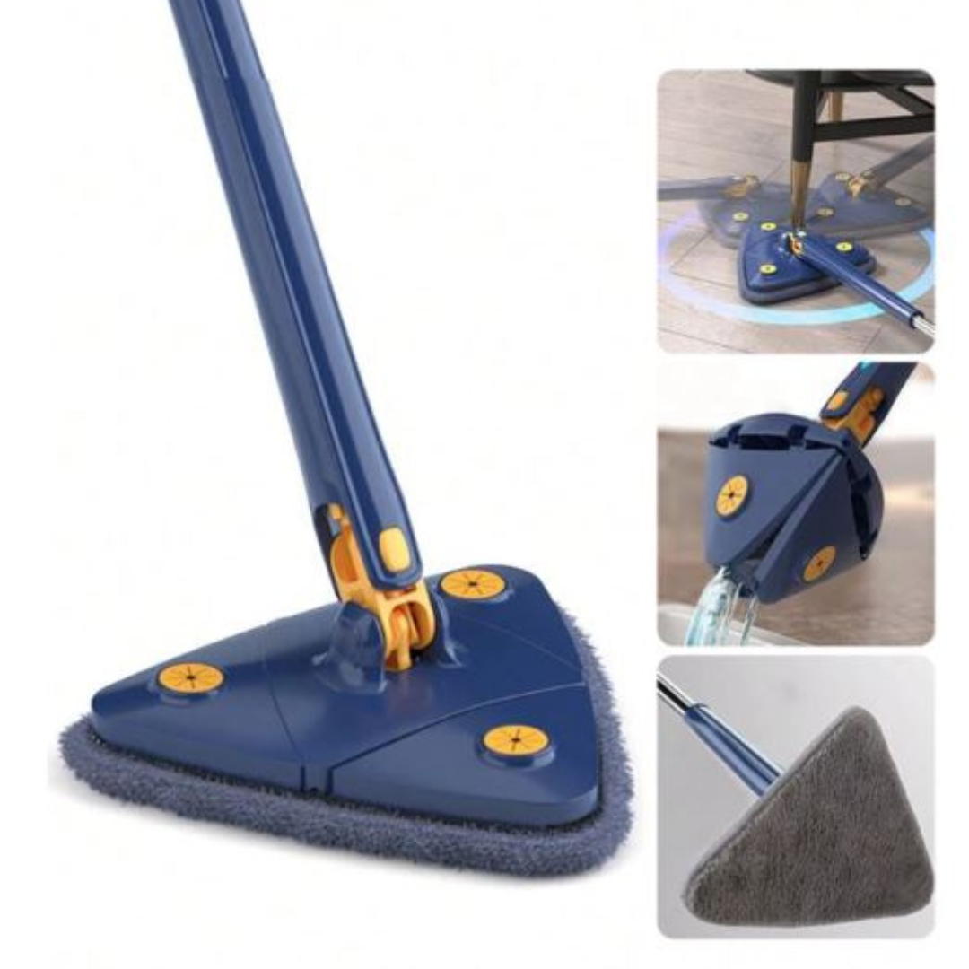 Con un cabezal giratorio de 360° y un trapeador triangular, esta fregona ofrece una limpieza rápida y eficiente, ideal para eliminar polvo, pelo de mascotas y suciedad en tu hogar